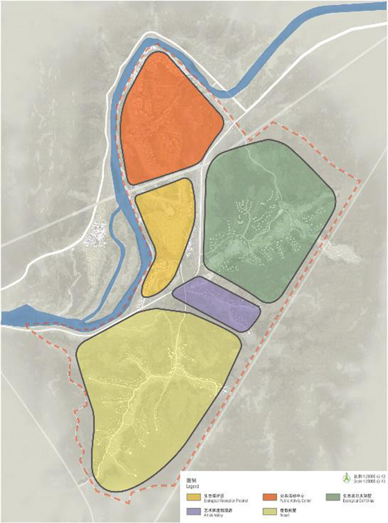 在規劃區東部已有破壞的山谷布置生態高爾夫別墅;基地東南部生態環境好的山谷布置度假別墅和藝術家度假酒店。