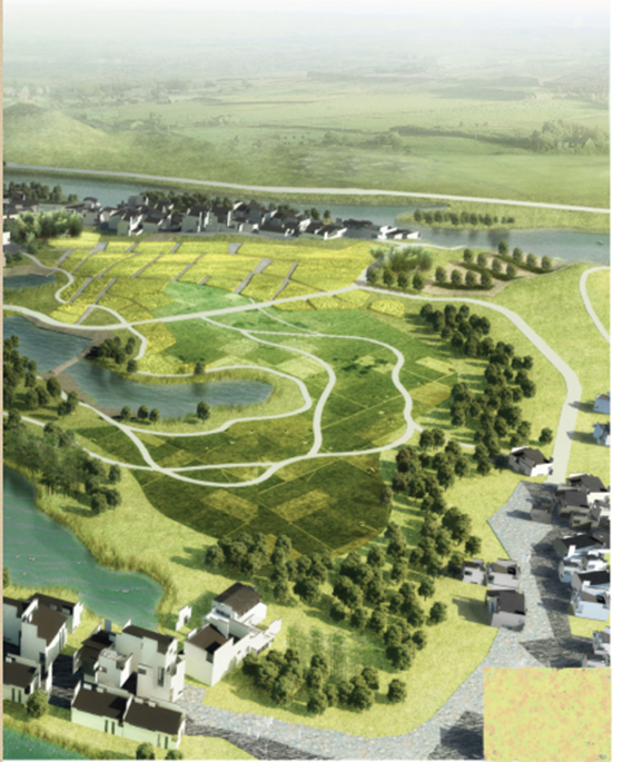 在規劃的北部,通過對原有河村的改造,形成公共活動中心,規劃度假酒店、濱水零售商業、風情小鎮;
