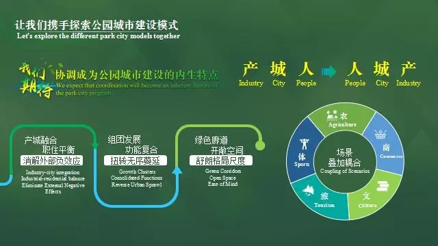 公園城市引領城市發展方式變革,統籌空間、規模、產業三大結構,在公園中營建城市,以大尺度生態廊道區隔城市組群,以高標準生態綠道串聯城市社區,推動公共空間與自 然生態相融合,引導城市人口、生產力、基礎設施和公共服務等合理布局,實現城市精明增長和高質量發展。 ![]() |