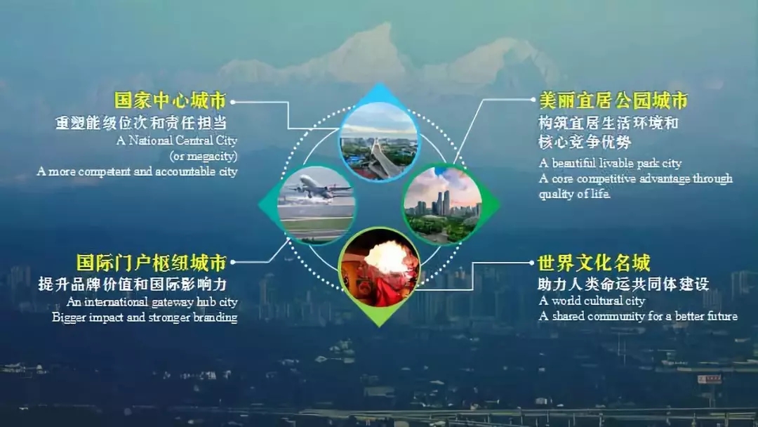 國家中心城市,順應中華民族偉大復興引領城市崛起的時代機遇,重塑成都在全球城市版圖上的能級位次和責任擔當; 美麗宜居公園城市,全面貫徹落實總書記的深切囑托,構筑人城境業高度和諧統一的宜居生活環境和核心競爭優勢; 國際門戶樞紐城市,主動服務國家全面開放新格局,凸顯在“一帶一路”建設中的樞紐作用,持續提升城市全球品牌價值和國際影響力; 世界文化名城,承載中華文明、天府文化走向全球的歷史使命,以文化交流互鑒助力人類命運共同體建設。 “三步走”戰略和“四大戰略定位”共同勾勒出成都未來發展的科學路徑和美好圖景,構筑了成都面向未來的戰略能力和競爭優勢,為生態文明時代更好滿足人民對美好生活 向往提供成都案例。 |