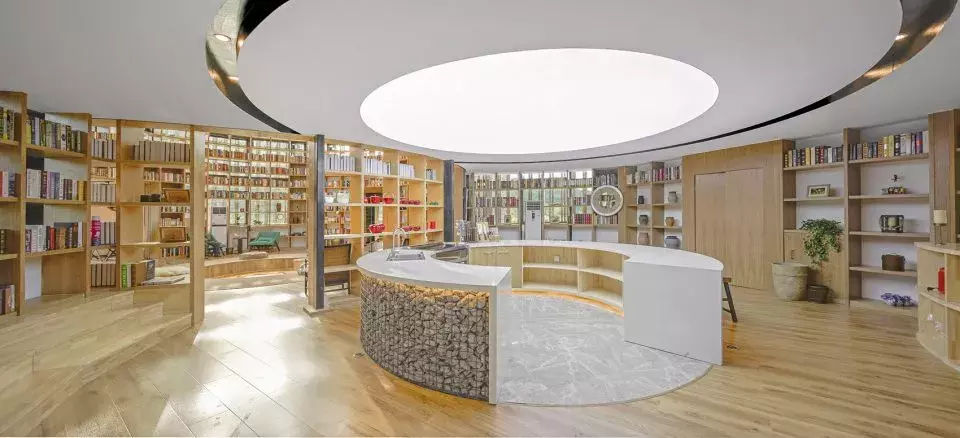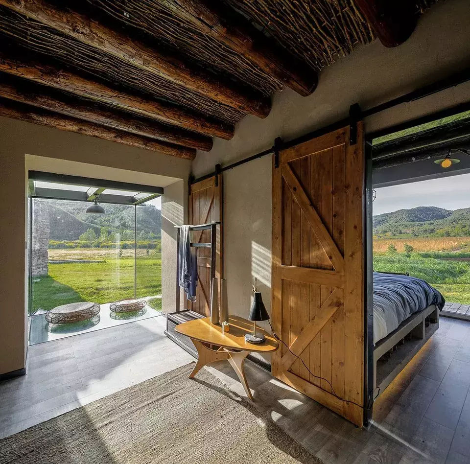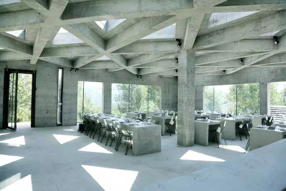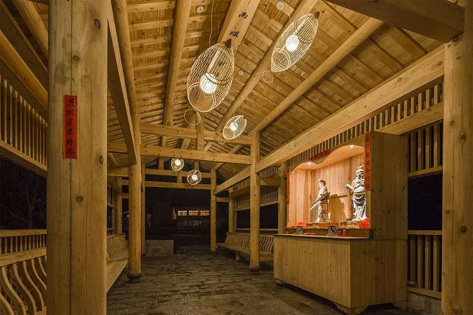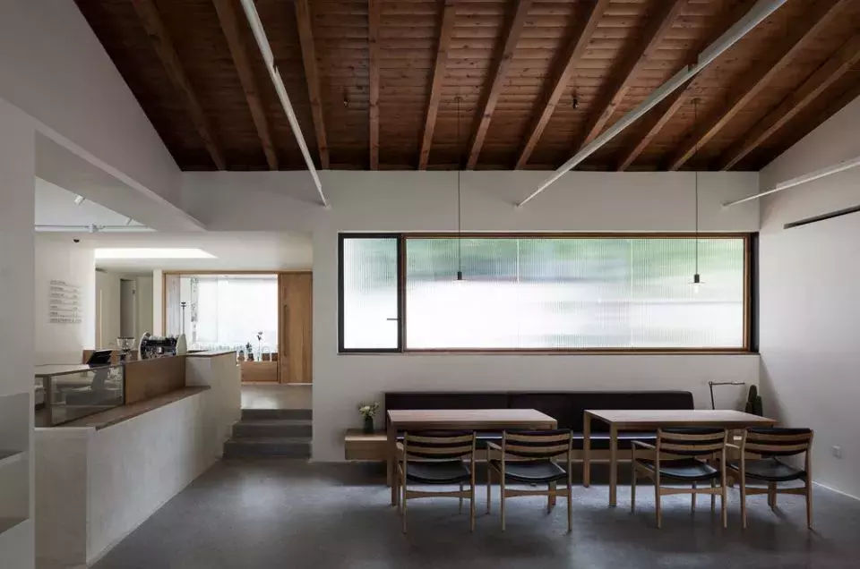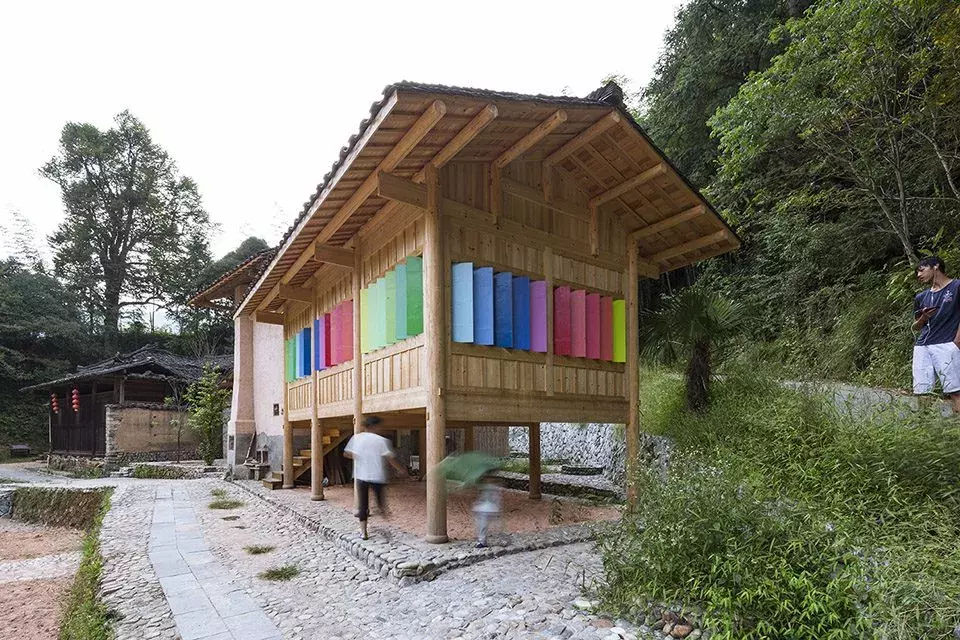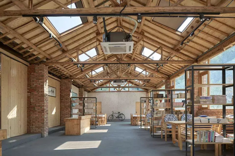 設計師在大空間中盡量多的設置天窗,使風景最大化的映入室內,也盡可能減少對周邊民宅的干擾。施工中大量使用就地取材的鄉土材料,門窗由村里的老工匠制作。