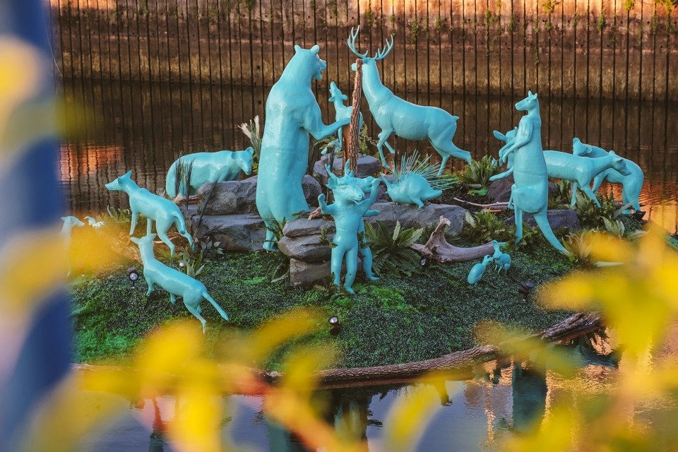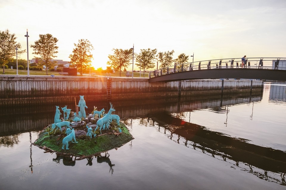 In the Bassin Louise section of Quebec City’s port lies a mysterious floating island inhabited by a diverse, surreal cast of plants and animals—a fantastic oasis that appears to have broken off from a distant land mass and drifted to our shores along with its outlandish ecosystem. Day and night, The Happy Castaways stand on their island, inviting us to join them in a shared dream of a world more harmonious and peaceful than this one.