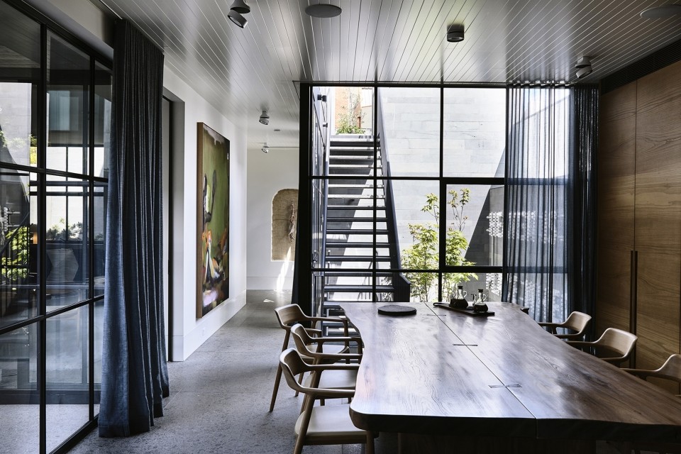 The reworking of older-style details in the front section of the original building, include curved cornices, arched doors and custom steel fireplaces, which are not typical modern construction methodologies, but feel at ease within the Victorian frontage. Integral to the details is an authentic demonstration of unusual level of craftsmanship, an appreciation of the capacity of man-kind. Even the smallest of details, like the hand-stained dovetail joints along the timber skirting, are deserving of a moment’s reflection.