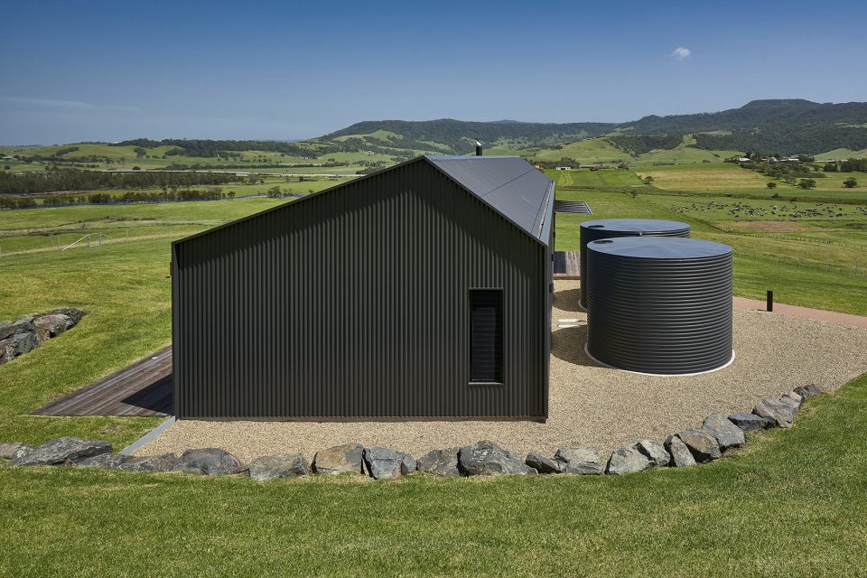The site positioning offered a significant view towards the nearby dairy with the setting sun over the escarpment offering a unique user experience. The whole western facade is operable with a system of large operable panels employed to regulate light and views. The system provides dramatic light effects in to the living areas or can be fully closed at the touch of a button via Hydraulic cylinders hidden under the sub floor. Sustainability measures incorporated into the design are; passive solar, extra thick highly insulated walls, double glazing, rain water harvesting (off grid), with UV filtration and treatment, on-site sewage treatment and supplementary solar power.