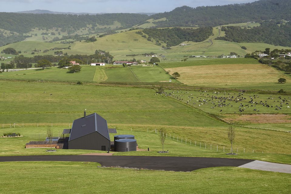 The project utilises north and south decks as ‘winter’ and ‘summer’ outdoor space to enable the occupants to use the building mass as sun or wind protection moving to each side as favoured. The local cultural significance of metal shed dairy structures (many of which in view of the project) and iconic green rolling pastures in a seaside setting, is honoured and further explored.
