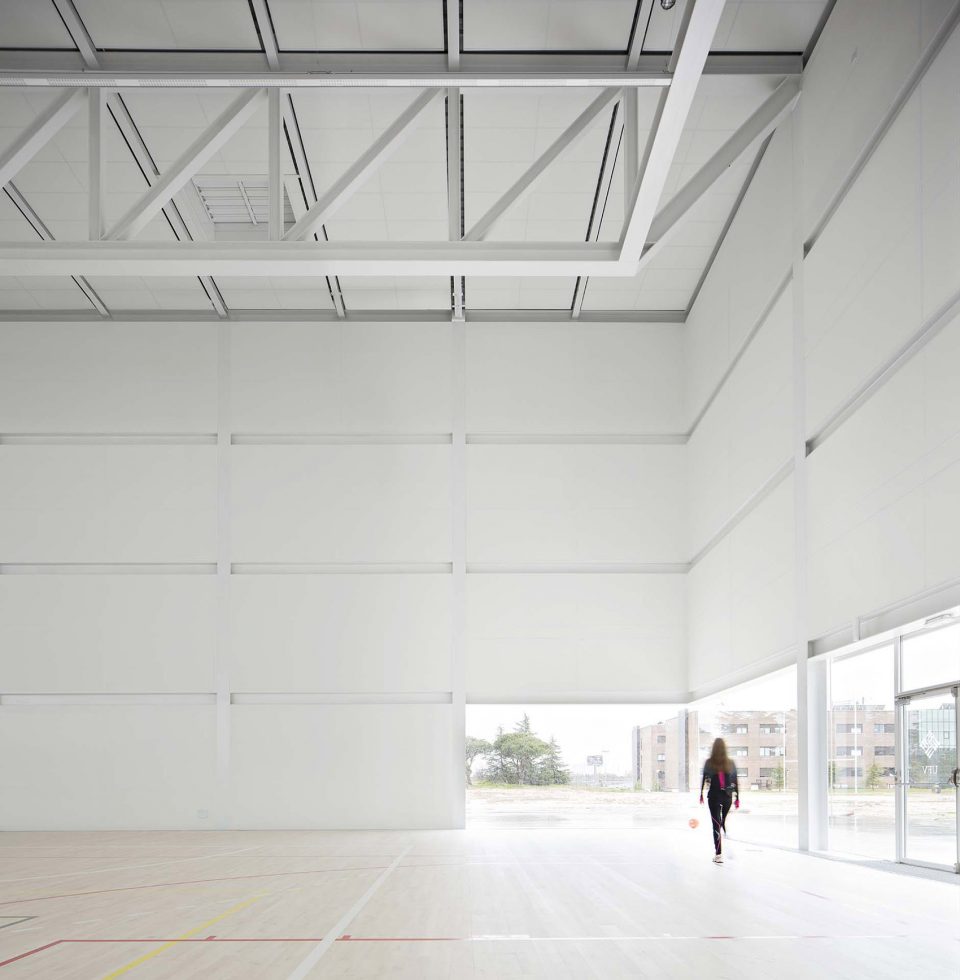 Designed for the campus of the Francisco de Vitoria University in Pozuelo (Madrid), the building houses a sports center and classroom complex. It includes the use of sports halls, multi-purpose rooms, a gymnasium, swimming pool, physiotherapy, etc. The sports complex can also be used as a large multi-purpose area and meeting hall, facilitating a range of university activities.