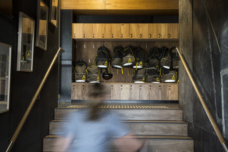 設計將現有的夾層和底層空間改造為適應大型活動的學習性空間,并將 Drill 大廳保留為演藝和教學空間。兩層空間之間由一系列木制的看臺連接,既尊重了原有建筑空間的體量,由為大型團體活動提供了必要的觀賞設施。