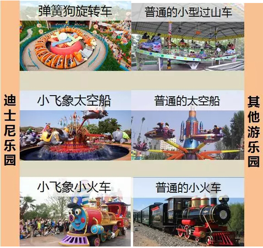 經過對比大家會發現,迪士尼將自己的大電影很好的融入到了游樂設施上,幾乎游樂園內所有的設施都是用的自己原創的IP;而縱觀其他游樂園,設施單調且無自己的特色可言,又怎么能超越迪士尼呢?